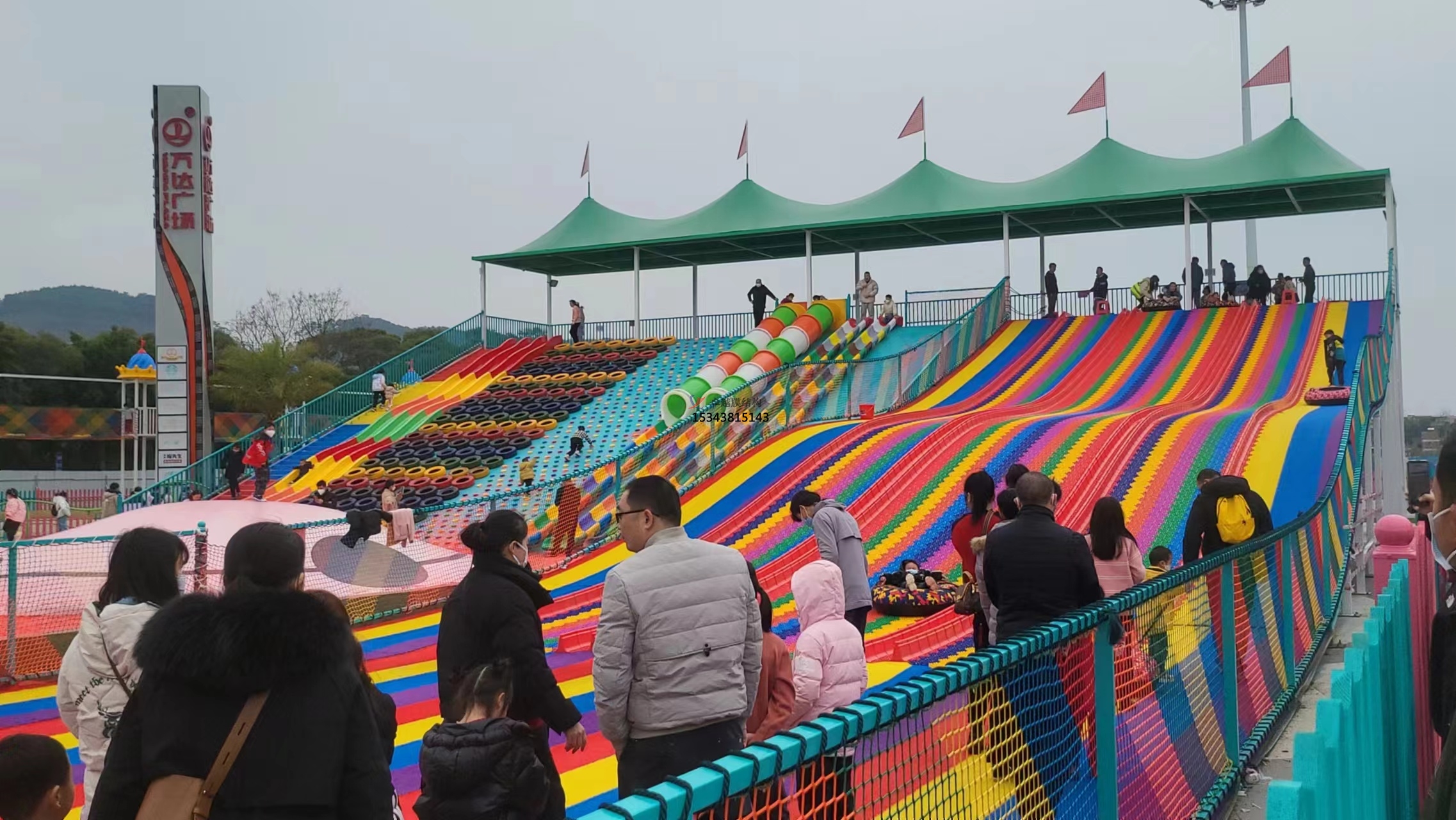 鄭州彩虹滑道游樂(lè)設(shè)備紅色遮陽(yáng)棚結(jié)構(gòu)設(shè)計(jì)生產(chǎn)