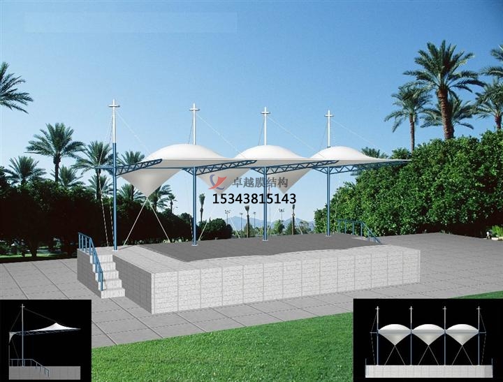藝術(shù)性:除了一般雨蓬不可比擬的實(shí)用、耐用、遮風(fēng)擋雨的功能外,膜結(jié)構(gòu)雨蓬更是一座雕塑,一件藝術(shù)品,給人美的視覺享受。其柔美,其曲線,其剛?cè)岵?jì),其豐富造型,其潔白無瑕,讓人眼前一亮,回味悠長(zhǎng)。