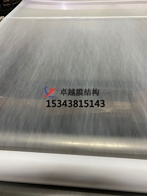 這種膜材有較好的焊接性能,有優(yōu)良的抗紫外線、抗老化性能和阻燃性能。另外,其防污自潔性是所有建筑膜材中較好的,但柔韌性差,施工較困難,成本也十分驚人。