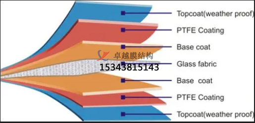 EC6PTFE膜材成本較EC3低,但膜材性能也比EC3差些,一般用于中小型和形狀平緩的膜結(jié)構(gòu)。