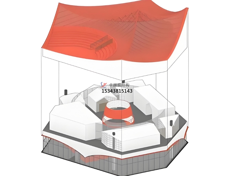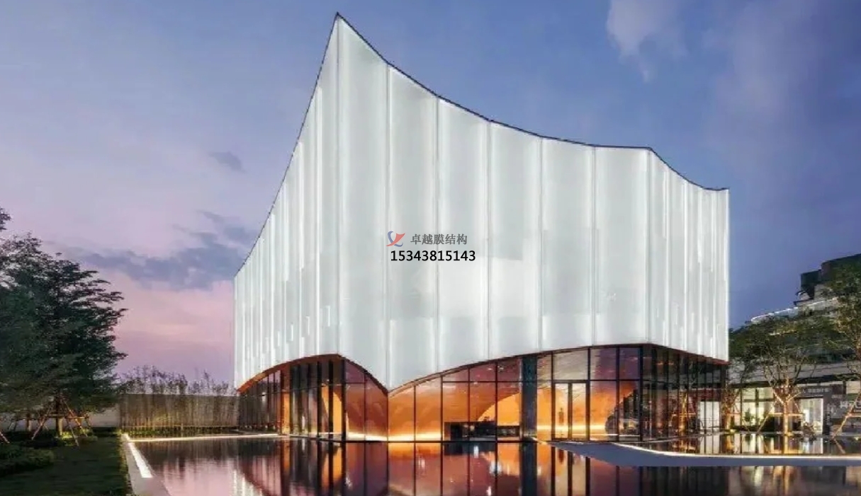 PTFE膜材,這種材料不僅具有半透明的效果,還能減弱建筑的壓迫感,增加親和力。