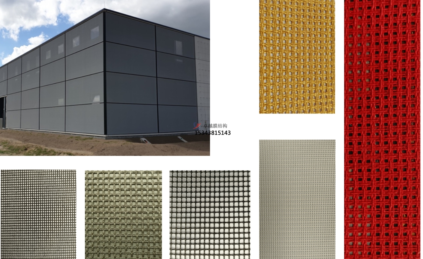 PTFE網(wǎng)格膜的制作工藝涉及將玻璃纖維基材的紗線網(wǎng)格間距適當(dāng)加大,并浸漬PTFE乳液,從而形成具有特定開孔率的網(wǎng)格織物基材。隨后,在嚴格的溫度和壓力條件下,將PTFE薄膜雙面貼覆于基材上,最終定型為具有特定厚度和幅寬的網(wǎng)格覆膜材料,通常被稱為高透膜。得益于玻璃纖維紗線成熟的編織工藝,可以定制出高強度的織物基材,其強度等級可達到G6。即便不借助拉索,膜單元的跨度也可輕松達到約5米。此外,PTFE的耐久性和自潔性也相當(dāng)出色,使得這種覆膜材料在外觀效果上表現(xiàn)出色。