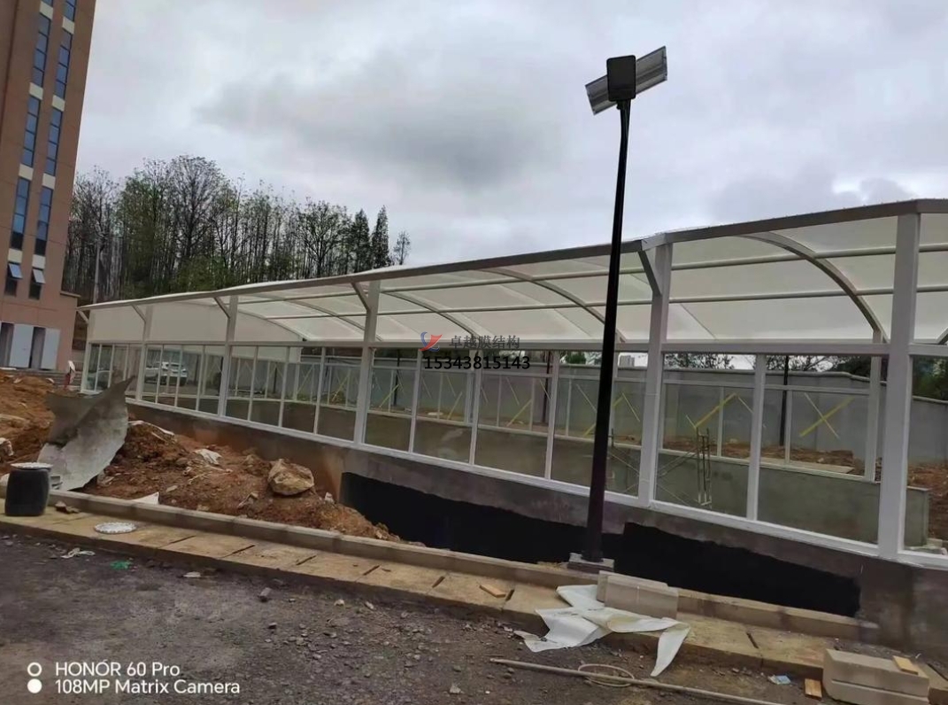 3、提升形象:膜結(jié)構(gòu)雨棚的輕盈、優(yōu)雅外觀,能夠顯著提升地下車庫的整體形象。無論是小區(qū)、企業(yè)還是單位,安裝膜結(jié)構(gòu)雨棚后,都能給人一種整潔、美觀的印象,從而提升整個場所的檔次。