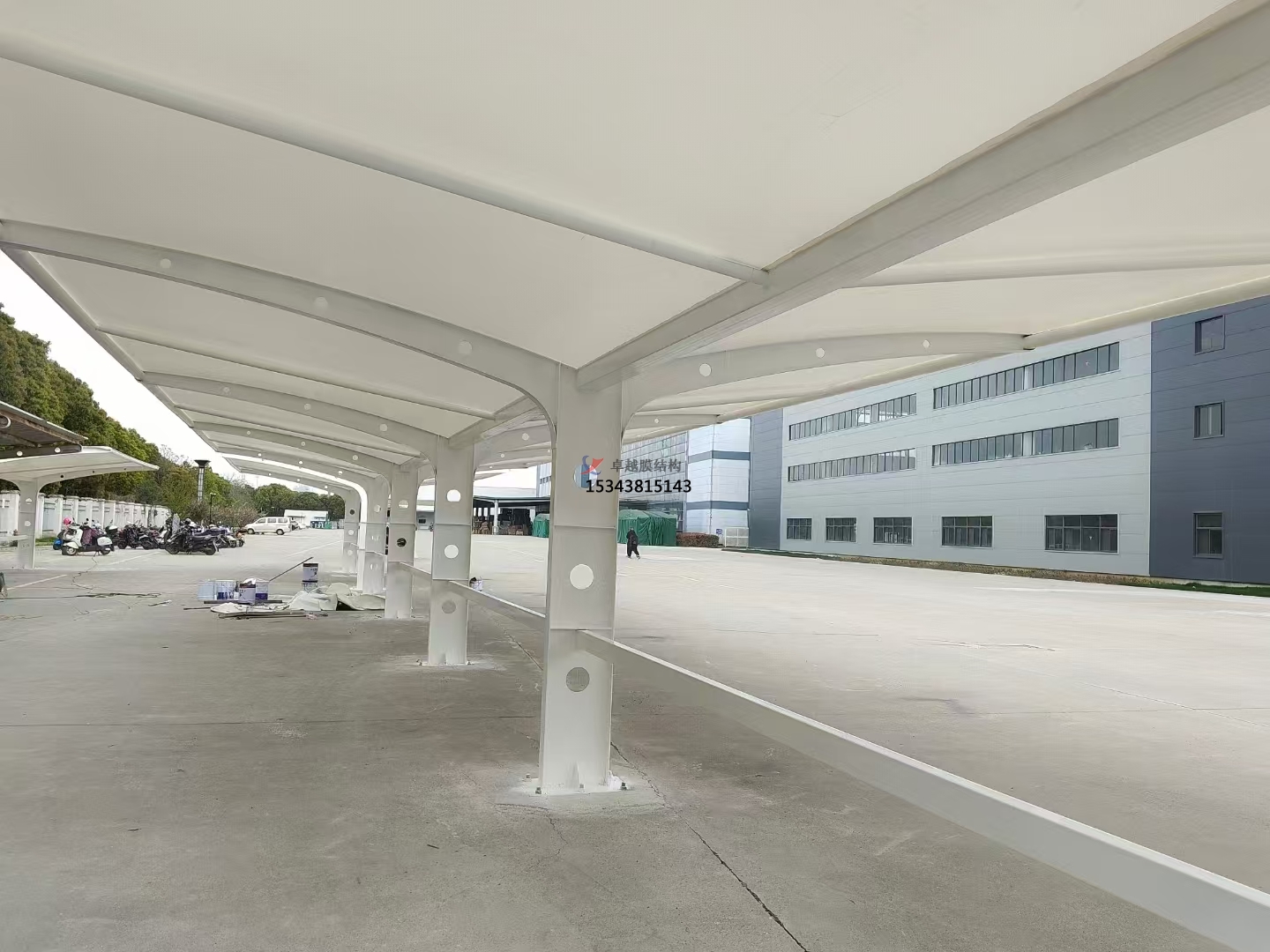 膜結(jié)構(gòu)停車棚具有組裝簡單、施工效率高的優(yōu)點,可以快速地完成安裝和卸載,這不僅可以節(jié)約時間和費用,而且也可以減少對周邊環(huán)境和建筑物的影響。