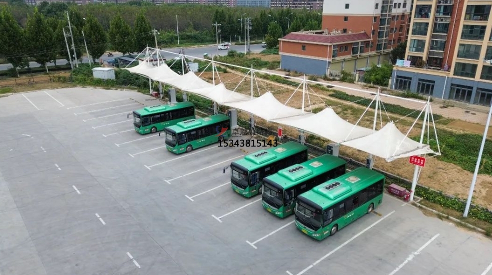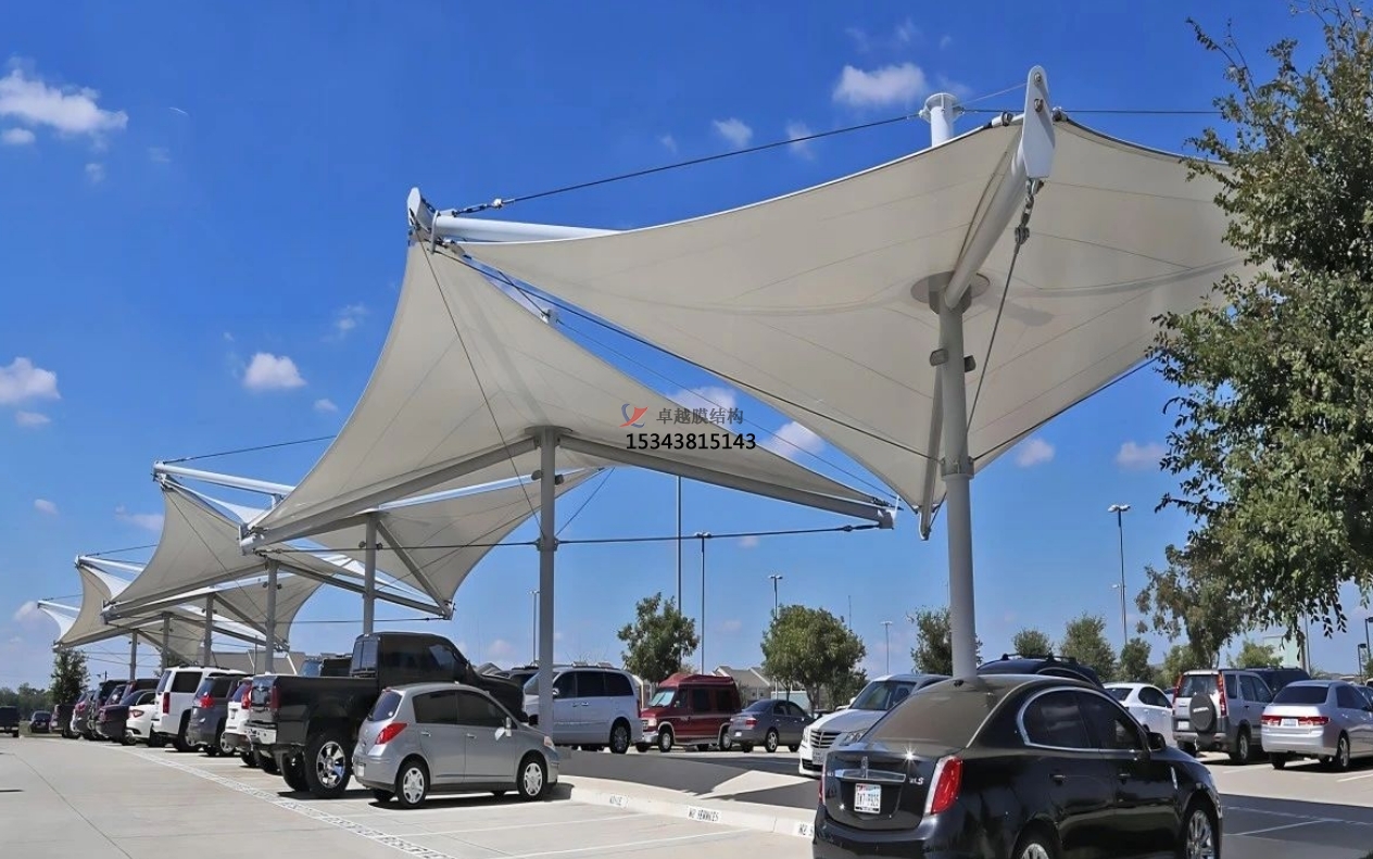 傳統(tǒng)的停車車棚一般需要固定的柱子和梁,占用很大的空間。而膜結(jié)構(gòu)停車棚不需要太多的支撐點,可以實現(xiàn)跨度大、空間利用率高的設(shè)計,可以給停車場更多的空間,為用戶提供更多停車選擇。
