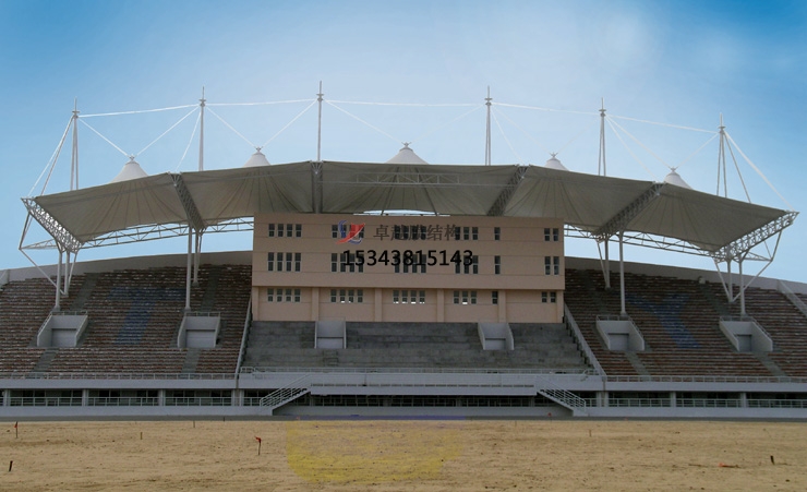 訂制體育場膜結(jié)構(gòu)看臺具有環(huán)保與安全性能。其可持續(xù)性設(shè)計,通過透光膜材減少照明能耗,自潔涂層可降低維護(hù)成本。材料可回收,施工過程減少廢棄物排放。需通過結(jié)構(gòu)強(qiáng)度、抗老化、耐風(fēng)壓等多輪測試,確保50年以上使用壽命。在訂制體育場膜結(jié)構(gòu)看臺時,要選擇有經(jīng)驗(yàn)、信譽(yù)好的設(shè)計和施工團(tuán)隊(duì),嚴(yán)格按照相關(guān)規(guī)范和標(biāo)準(zhǔn)進(jìn)行操作,以確??磁_的質(zhì)量和安全性。
