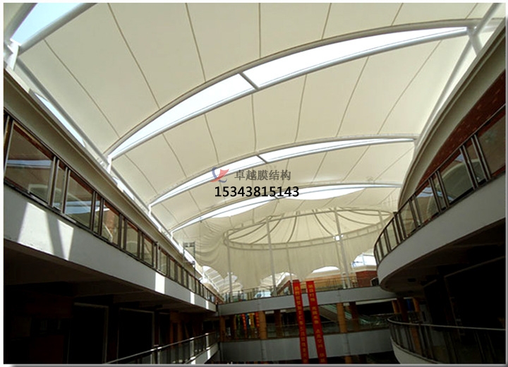 1.商業(yè)街膜天花板,一般指安裝在商業(yè)街頂部的膜結(jié)構(gòu),對購物者起到遮陽和防雨的作用。