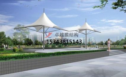 張拉膜景觀(Tesioned Membrane Structure) ,是依靠膜自身的張拉應(yīng)力與支撐桿和拉索共同構(gòu)成機(jī)構(gòu)體系。在陽(yáng)光的照射下,由膜覆蓋的建筑物內(nèi)部充滿自然漫射光,無(wú)強(qiáng)反差的著光面與陰影的區(qū)分,室內(nèi)的空間視覺(jué)環(huán)境開(kāi)闊和諧。夜晚,建筑物內(nèi)的燈光透過(guò)屋蓋的膜照亮夜空,建筑物的體型顯現(xiàn)出夢(mèng)幻般的效果。