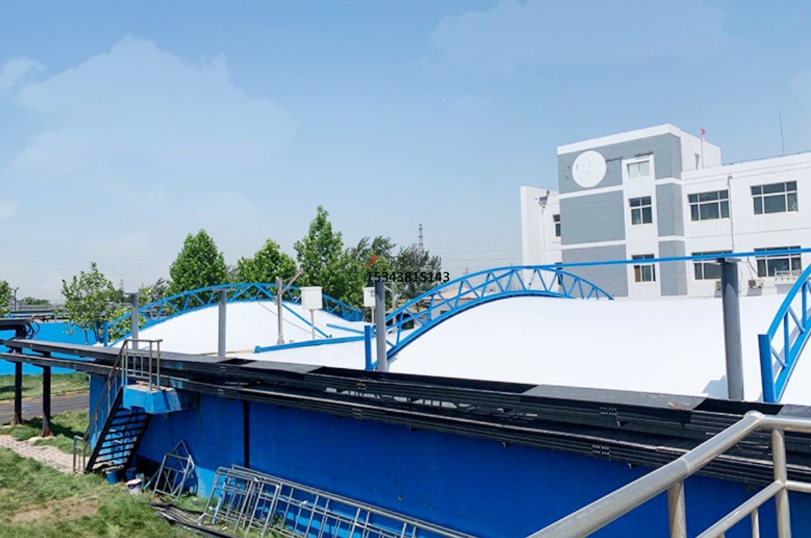 1、美觀實(shí)用:反吊膜以其流暢的線條、時(shí)尚的色彩,為污水池增添了一抹現(xiàn)代感。同時(shí),其卓越的密封性能確保了廢氣不會泄漏,有效解決了環(huán)境污染問題,