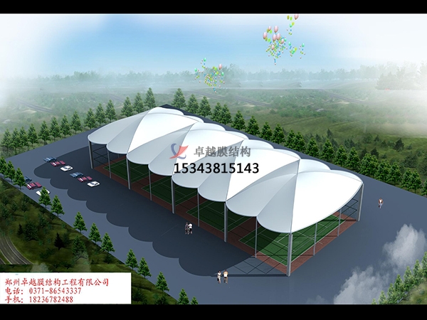 2、膜結(jié)構(gòu)的膜材制作是在專用膜材料加工廠熱合加工而成,通過現(xiàn)場組裝預(yù)制構(gòu)件(膜片、索等)而實現(xiàn)的。