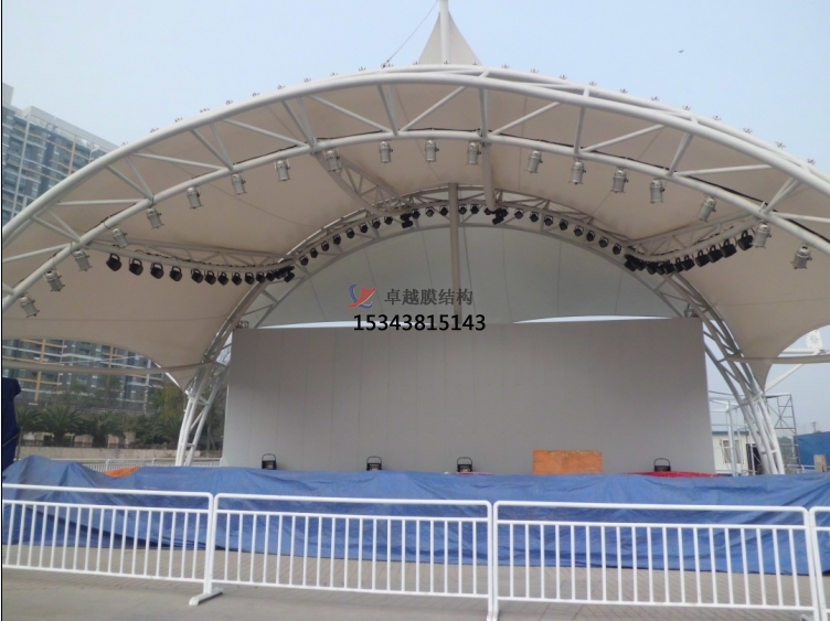 太原舞臺膜結(jié)構(gòu)可能很多人都沒法很好的界定這到底是個什么產(chǎn)品,今天太原膜結(jié)構(gòu)公司的小編就告訴大家舞臺膜結(jié)構(gòu)是現(xiàn)代科學(xué)技術(shù)發(fā)展的全新建筑技術(shù)表現(xiàn)的形式,是材料的科學(xué)、建筑學(xué)、結(jié)構(gòu)力學(xué)以及是現(xiàn)代環(huán)境學(xué)告訴發(fā)展的綜合產(chǎn)物,單曲面、多曲面等的魔幻版的結(jié)構(gòu)形式使舞臺膜結(jié)構(gòu)具有特殊視覺效果展示,一般的是在設(shè)計(jì)時(shí)就是會考慮造型及搭配的舞臺使用氛圍,滿足了群眾的觀看表演和其他的各個方面的體驗(yàn)。那舞臺膜結(jié)構(gòu)的優(yōu)勢到底有那些呢?