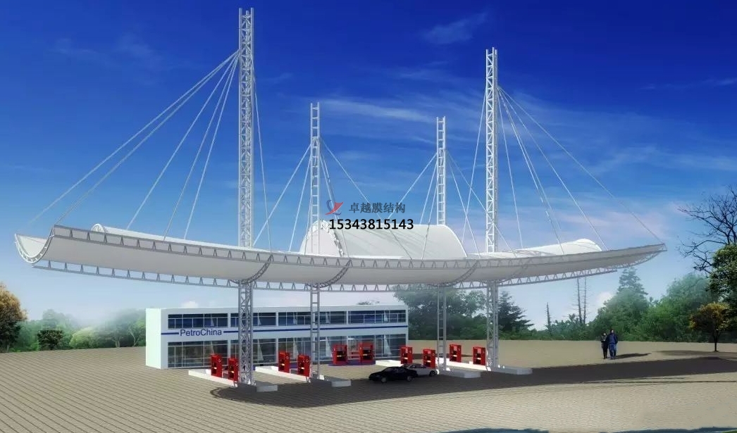 加油站膜結(jié)構(gòu)憑借其顯著區(qū)別與其他結(jié)構(gòu)的獨(dú)特外形,能迅速的抓住顧客的眼球,瞬時拉近與顧客的距離。