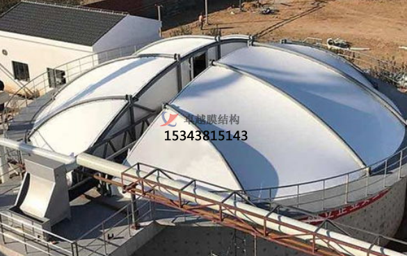 目前,污水池密封可采用的設(shè)計(jì)方案: 鋼支撐反吊膜、無骨架密封集氣罩、 懸索反吊膜等不同的設(shè)計(jì)方案,每種設(shè)計(jì)方案材料的用量都會有很大區(qū)別。一般采用鋼支撐反吊膜的較多,跨度太大時(shí)可以選擇無骨架密封集氣置、懸索反吊膜等解決方案。