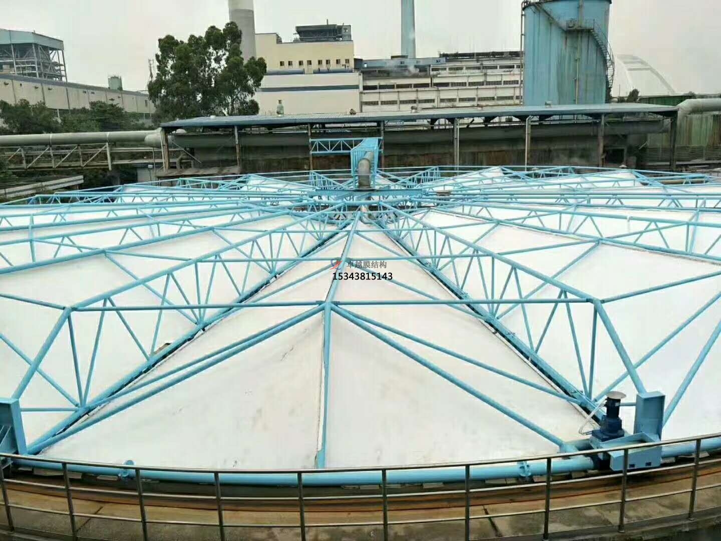 工程結構形式:四周硬邊式膜結構污水池加蓋