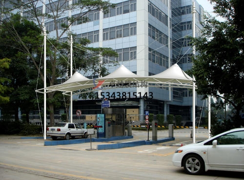 二、商業(yè)廣場雨棚搭建設計時應使膜材強度具有足夠的安全裕度,保證膜面張拉后能正常承載。同時節(jié)點構造要考慮膜面因材料徐變、連接松動、膜面積水等發(fā)生膜面松弛而需進行二次張拉的可能性。節(jié)點連接件應具有足夠強度、剛度,防止失效。