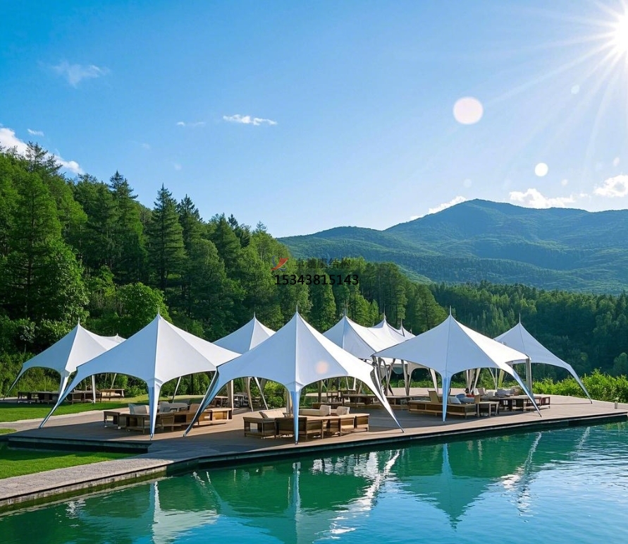 帳篷酒店膜結構在各類旅游場景中廣泛應用。在山地旅游景區(qū),膜結構帳篷可依山勢而建,巧妙融入自然山林景觀,為游客提供親近山林、聆聽鳥鳴的住宿體驗;海濱度假勝地,帳篷酒店膜結構憑借其輕盈造型與抗風性能,矗立在沙灘旁,讓游客伴著海浪聲入眠;在草原旅游區(qū),大型膜結構帳篷酒店可作為綜合性住宿場所,內部設置多個房間與公共區(qū)域,既能滿足游客住宿需求,又能舉辦篝火晚會等特色活動,豐富游客的草原之旅。