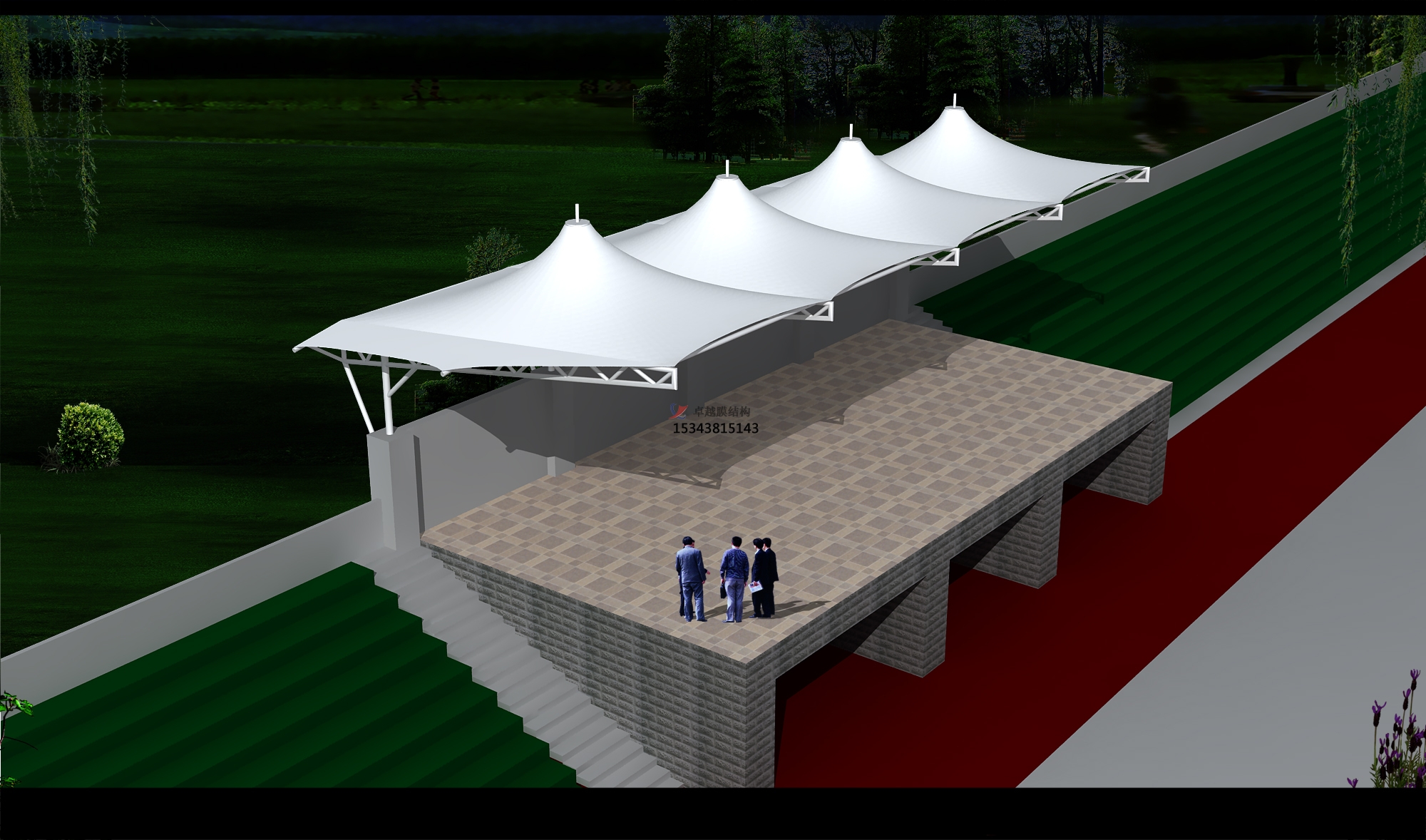 鄭州卓越膜結(jié)構(gòu)公司擁有先進(jìn)的膜材,ETFE、PTFE及PVC自動加工設(shè)備和3D3S、3DMAX、EASY、SMCAD、STCAD等多套設(shè)計軟件。鄭州卓越始終秉持著科學(xué)的管理、嚴(yán)謹(jǐn)?shù)脑O(shè)計、精確的制作安裝、嚴(yán)格的質(zhì)量檢測、良好的后期服務(wù),重視每一位客戶,完善每一個創(chuàng)意;本著"誠信服務(wù)、創(chuàng)造精品"的理念,不斷求實創(chuàng)新、追求卓越,勇攀膜結(jié)構(gòu)行業(yè)技術(shù)的高峰,引領(lǐng)膜結(jié)構(gòu)發(fā)展的潮流,一切以客戶的滿意為中心,致力于追求更完美、更新穎、更精致的工程,更優(yōu)的質(zhì)量,更好的服務(wù)是我們持之以恒的追求目標(biāo)。無論是設(shè)計深化,還是鋼材施工安裝,或是膜材的加工裁剪,鄭州卓越膜結(jié)構(gòu)都有專業(yè)技術(shù)人員幫您解決。