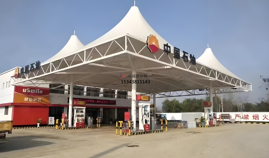 加油站頂棚膜結(jié)構(gòu)在建筑領(lǐng)域具有顯著的應(yīng)用價值。其采用高強度膜材,具有良好的耐候性和耐久性,確保加油站內(nèi)部環(huán)境舒適。此外,頂棚膜結(jié)構(gòu)自重輕,安裝便捷,有效降低施工難度。相較于傳統(tǒng)建筑,頂棚膜結(jié)構(gòu)具有以下優(yōu)勢:首先,其自潔性能優(yōu)異,減少清潔成本;其次,膜材透光性佳,節(jié)約照明能源;最后,造型美觀,提升加油站整體形象。