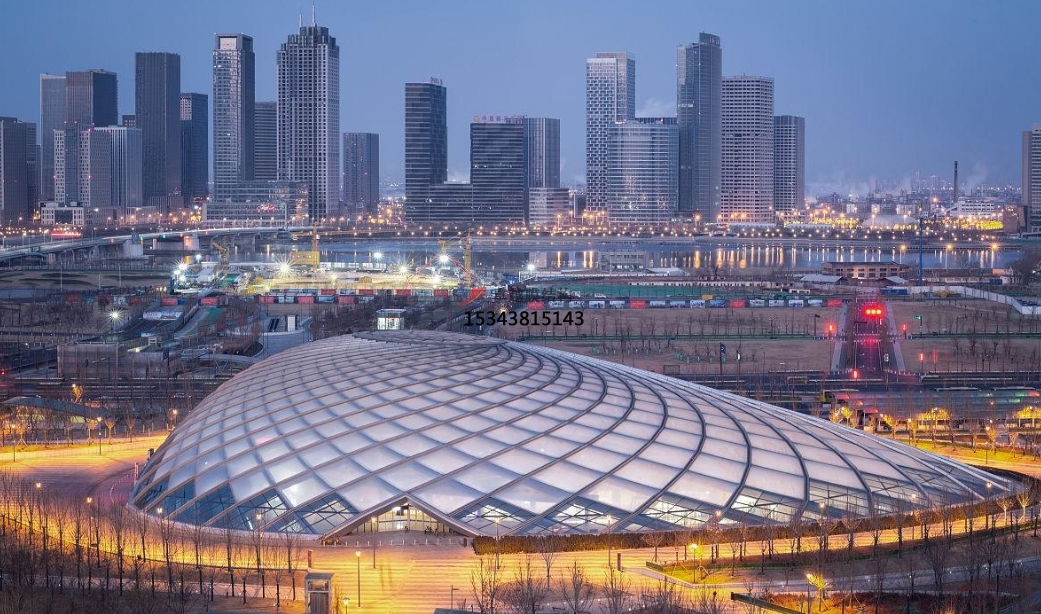 宜賓高鐵站在渝昆高鐵宜賓站站前交通樞紐基礎(chǔ)設(shè)施及歸納配套建設(shè)項目中,利用 etfe 膜結(jié)構(gòu)天幕雨棚連接車站、商業(yè)歸納體和城市綠芯公園等主要功能區(qū)域。整個天幕及天橋以鋼結(jié)構(gòu)為基礎(chǔ),天幕框架結(jié)構(gòu)選用鋼結(jié)構(gòu)或鋁合金作為承重結(jié)構(gòu),頂部掩蓋 etfe 資料和光伏玻璃,并調(diào)配流動燈光效果,完美展現(xiàn)竹和流水的規(guī)劃理念。該項目鋼結(jié)構(gòu)總用鋼量約 1.2 萬噸,屋面選用 etfe 通明資料,在確保規(guī)劃效果簡練與形狀優(yōu)美的一起,也為過往行人營建出天然舒適的開放空間 。