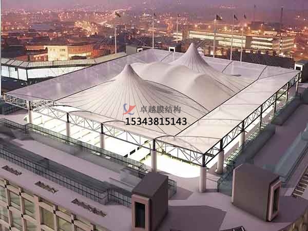 6、膜結構工程,所用的膜材相對于傳統(tǒng)涂理PVC的聚醋纖維膜材,涂覆PTFE的玻瑞纖維膜材的透射光譜更加均勻具有外觀新穎,經濟適用,適用壽命長,結構更安全,質量更可靠。