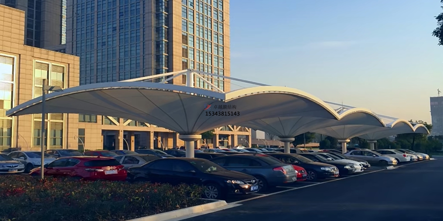雙挑膜結(jié)構(gòu)車棚錯落有致地排列著,不僅為車輛提供了庇護(hù),還宛如一件件精美的藝術(shù)品,與周圍的綠化景觀、建筑風(fēng)格相得益彰,極大地提升了整個區(qū)域的環(huán)境美感和品質(zhì)檔次。