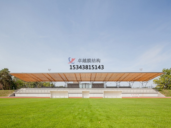 PTFE膜結(jié)構(gòu)看臺的結(jié)構(gòu)優(yōu)勢:PTFE膜結(jié)構(gòu)看臺的優(yōu)勢很多。其中結(jié)構(gòu)優(yōu)勢主要有造型美觀獨特、大跨度覆蓋和良好的受力性能。PTFE膜結(jié)構(gòu)可以創(chuàng)造出傳統(tǒng)建筑體系無法實現(xiàn)的設(shè)計方案,如各種曲線、弧線、折線等多樣形狀,為體育場館增添獨特的建筑美感,使其成為城市的標(biāo)志性建筑之一。由于PTFE膜材輕質(zhì)且強度高,配合合理的支撐結(jié)構(gòu),可實現(xiàn)較大跨度的空間覆蓋,減少中間支撐柱的設(shè)置,為觀眾提供更開闊、無遮擋的視野。膜結(jié)構(gòu)通過合理的預(yù)應(yīng)力分布,能夠均勻地承受風(fēng)荷載、雪荷載等各種外荷載,在受力過程中通過膜面的變形來適應(yīng)荷載變化,使結(jié)構(gòu)保持穩(wěn)定。