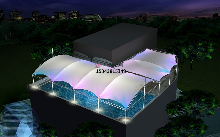 2、商業(yè)建筑:膜膜結(jié)構(gòu)建筑因新穎的建筑造型、特殊的夜景,具有十分獨特的建筑可識性和商業(yè)效應,可應用于各種商業(yè)建筑,如大型商場、購物中心、酒店、餐廳等,小型攤位、展位、商店、步行街等,對大型封閉建筑空間應進行建筑熱工設計、光環(huán)境設計,達到保溫隔熱要求,特別設計的藝術(shù)燈光效果,聲學環(huán)境一般不特殊要求。