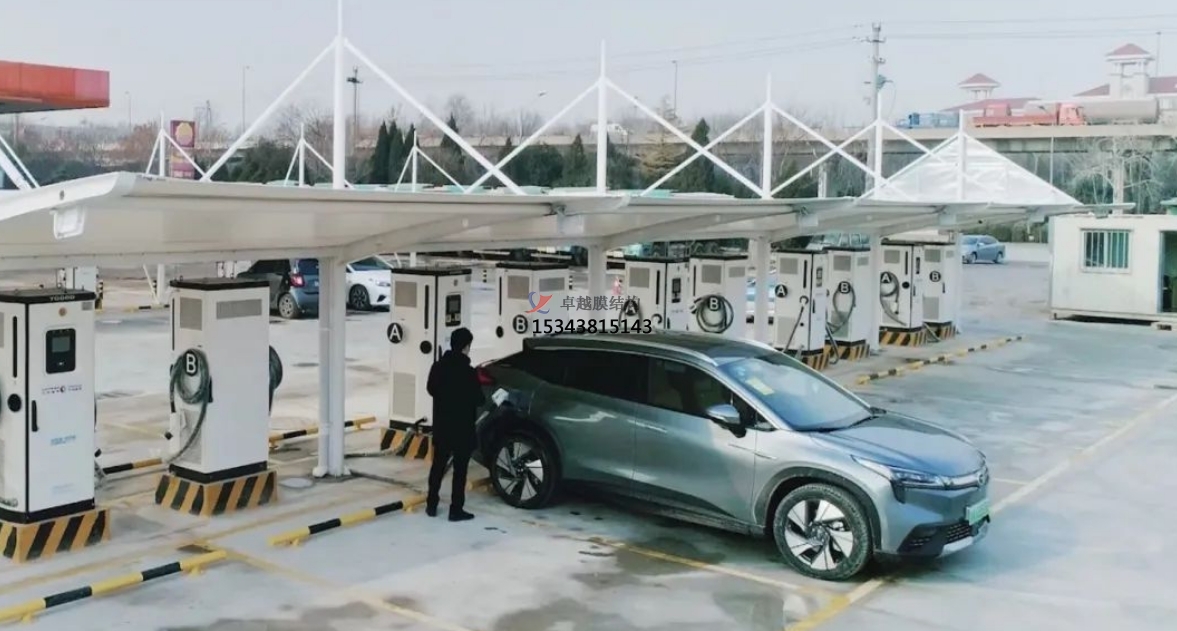 此外,膜結(jié)構(gòu)罩棚的空間利用率高,能夠在有限的面積內(nèi)容納更多的充電車位,滿足日益增長的充電需求。其靈活的布局設(shè)計也使得充電站能夠根據(jù)實際情況進行調(diào)整,適應(yīng)不同場景的需求。