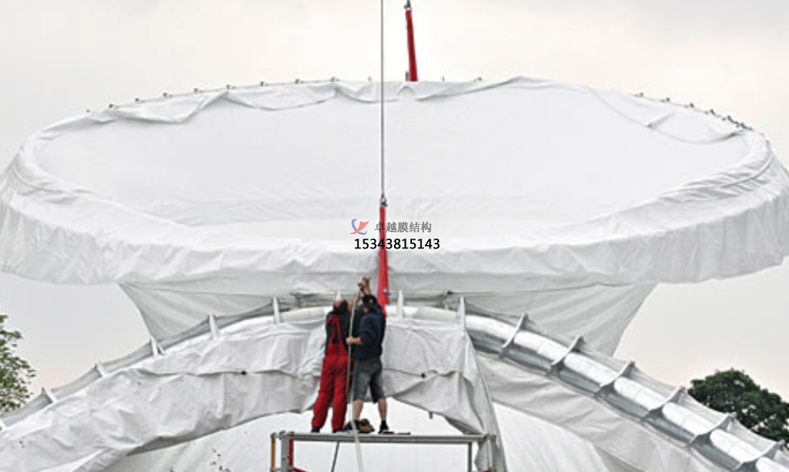 膜結(jié)構(gòu)舞臺的特點是面積大、工程量大,但是技術(shù)上已經(jīng)很成熟,工程質(zhì)量在于細節(jié)的把控。