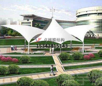 2. 藝術(shù)性:除了一般雨蓬不可比擬的實(shí)用、耐用、遮風(fēng)擋雨的功能外,張拉膜景觀雨蓬更是一座雕塑,一件藝術(shù)品,給人美的視覺享受。其柔美,其曲線,其剛?cè)岵?jì),其豐富造型,其潔白無瑕,讓人眼前一亮,回味悠長(zhǎng)。