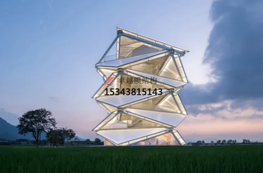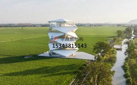 稻田上的燈塔的落成為當(dāng)?shù)氐泥l(xiāng)村提供了新的觀景點(diǎn)和社交聚集地。瞭望塔塔高23m,坐落于國家級現(xiàn)代農(nóng)業(yè)先行示范區(qū)高標(biāo)準(zhǔn)農(nóng)田的中心區(qū)域。它如同雕塑一般從稻田中螺旋升起,三角形元素和白色PTFE薄膜定義了其簡潔的設(shè)計(jì)語言,在鄉(xiāng)村大地上賦予了其強(qiáng)烈的存在感。